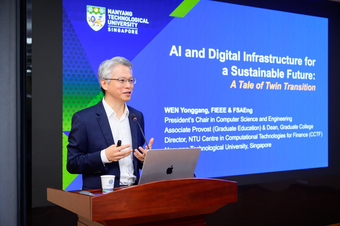 新加坡南洋理工大学文勇刚院士带来了题为《人工智能与数字基础设施助力可持续未来:双重转型的故事》的精彩报告。他以大型语言模型(如ChatGPT、PaLM、LLaMa)为研究对象,系统分析了其在训练与推理阶段的能源消耗与碳排放,并预测了未来发展趋势。在报告中,他介绍了“AI Wears PRADA”综合框架,强调平台、研究者、算法、数据与应用的协同,倡导利用AI优化数据中心能效、构建数字孪生系统,实现低碳、高效的智能化运营。
