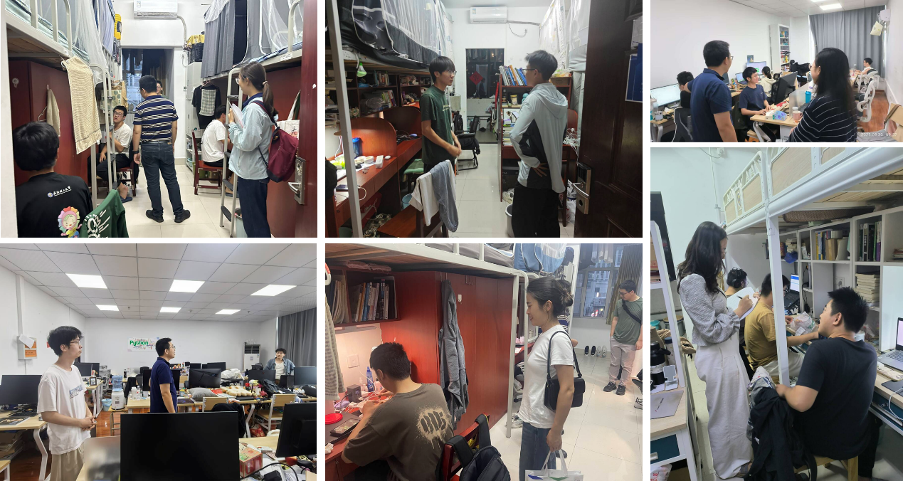 党委副书记韦宇带领全体辅导员深入本研学生寝室,开展全面的安全卫生检查工作,逐一排查安全隐患,为学生度过一个平安、愉快的假期保驾护航。