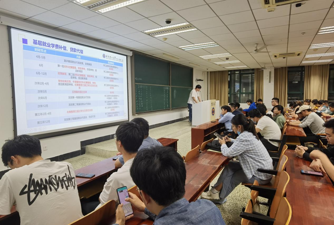 为积极响应国家号召,鼓励优秀毕业生到中西部地区与农村地区开展工作,同时帮助学生养成良好的还款意识,5月7日,色色视频 在南湖新1-204教室利用年级周会的时间为毕业生举行了宣讲会,本科2019级辅导员何邦泽老师主讲,色色视频 2023届全体毕业生参加。