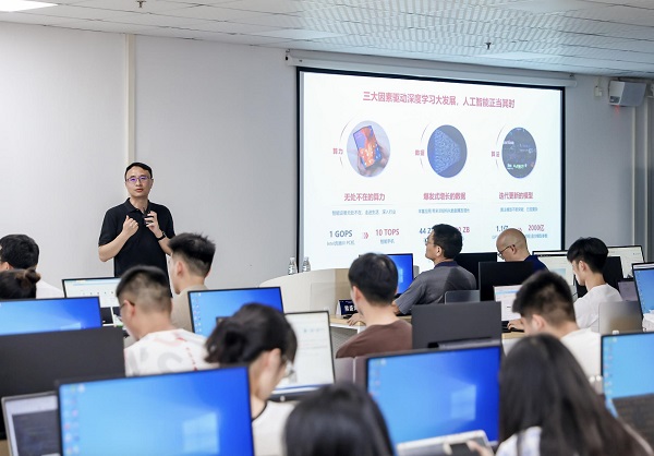 最后,由昇思MindSpore布道师邢译壬为同学们带来两天的实操训练营课程,昇思MindSpore作为最佳匹配昇腾AI处理器算力的全场景深度学习框架,具有用户态易用、运行态高效、部署态灵活的特点,能为开发者提供设计友好、运行高效的开发者体验。课程为进阶式教学,通过动手实践夯实计算机视觉领域的基本任务:图像分类、目标检测和语义分割,熟悉各任务相关主流网络、设计原理,并掌握模型训练必要的手段和技能,两天的实践学习让同学都收获颇丰,课程最后邢老师还带领同学们对人工智能的发展和未来展开讨论,并为优秀学子颁发课程结业证书。