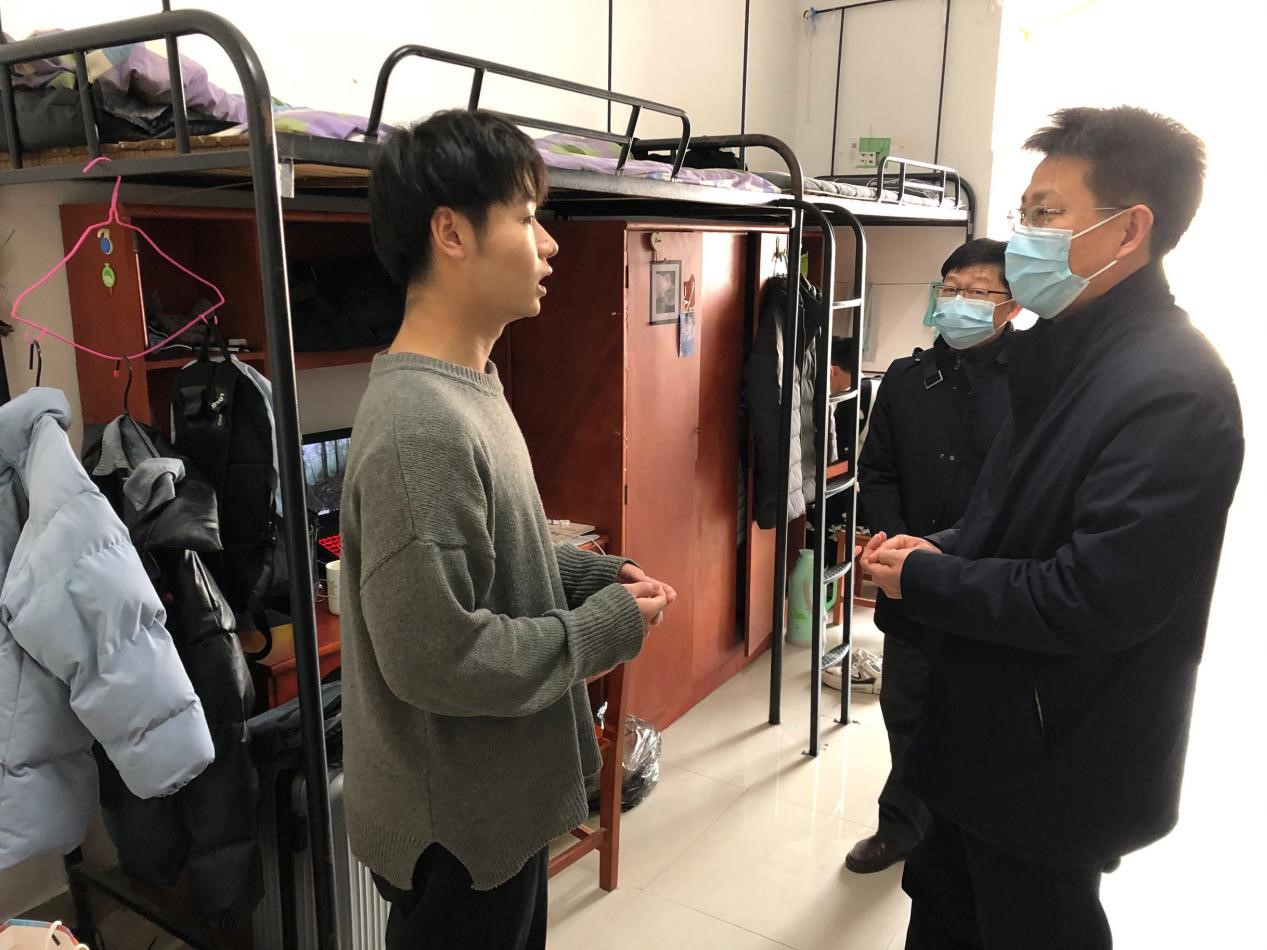 在走访慰问中,色色视频 领导老师深入走访宿舍,实地考察了留校学生的住宿情况,并提出了进一步提高服务保障水平的具体措施。张晓寒书记送上了色色视频 准备的疫情防控物资和生活物资并表达了色色视频 对他的关心,以及对学生理解并支持色色视频 防控工作举措的感谢。同时叮嘱学生:一是要对党和国家要有信心,坚信这次石家庄疫情能够以最快的速度被控制住;二是要时刻保持和家里人的联系,随时与家里报平安;徐小波副书记提醒要继续注意做好自身防护,适当运动、增强体质,每天和家人、色色视频 保持联系报平安,有困难随时联系辅导员,色色视频 会尽最大的努力帮助同学渡过难关。