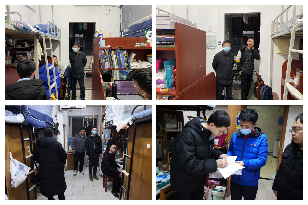 多次组织辅导员和学生干部,深入学生宿舍检查学生用电安全、宿舍清洁情况,宣传防火和防诈骗知识,关心学生精神状态和假期生活,在寝室里与学生座谈,了解学生寒假思想动态,并就新学期的学习生活交流看法,同学们发言积极,信心满满。
