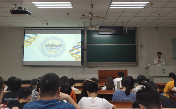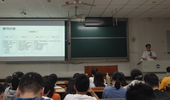 报告会上,录取至大连理工大学的涂迅同学以亲身经历从院校选择、复习计划、备考经验三个方面分享了自己的考研历程,鼓励在座的同学们端正学习态度,合理规划时间安排,用汗水和付出收获最满意的结果。录取至武汉大学的范笑宇同学则就择校择专业、初试、复试等贯穿考研全过程的信息获取、方法技巧、注意事项等做了详细的介绍,用自己或身边同学的真实经历告诫同学们理性看待考研形势,认清自身定位;养成良好学习习惯,坚定信念、把握机遇,坚定考研步伐。